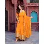 Gown, Fabric : Faux Georgette, Inner : Micro, Work. : Thred with Sequnce work, Stich. : M(38), XL(42), XXL(44)With 3XL margin, Front and Back Both size work, Pent, Fabric : Micro, Work. : Plain, Stich : Full stich upto 44 with elastic, Dupata, Fabric : Faux Georgette, Work : Thred with Thred work, Length : 2.2 meter.