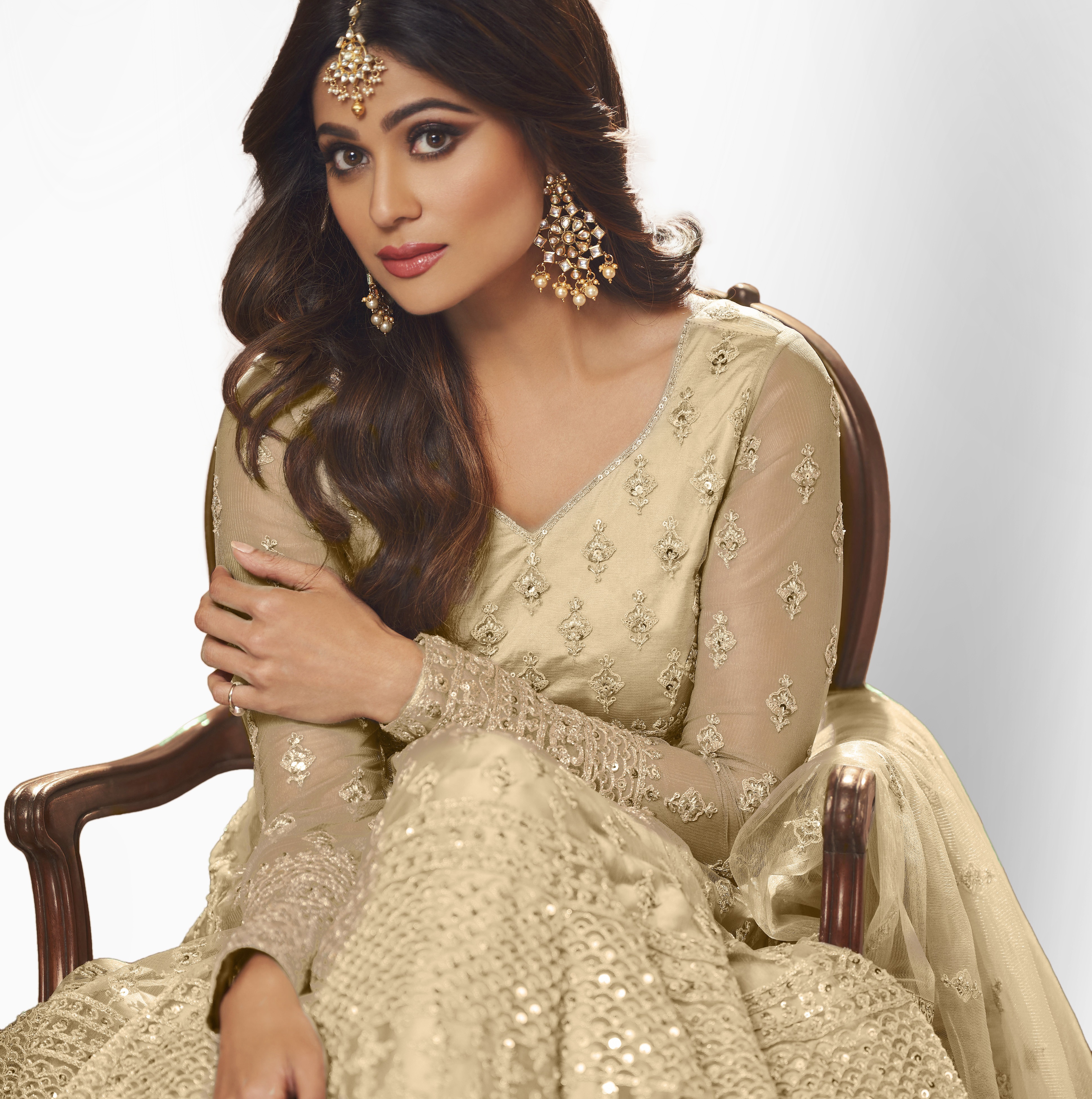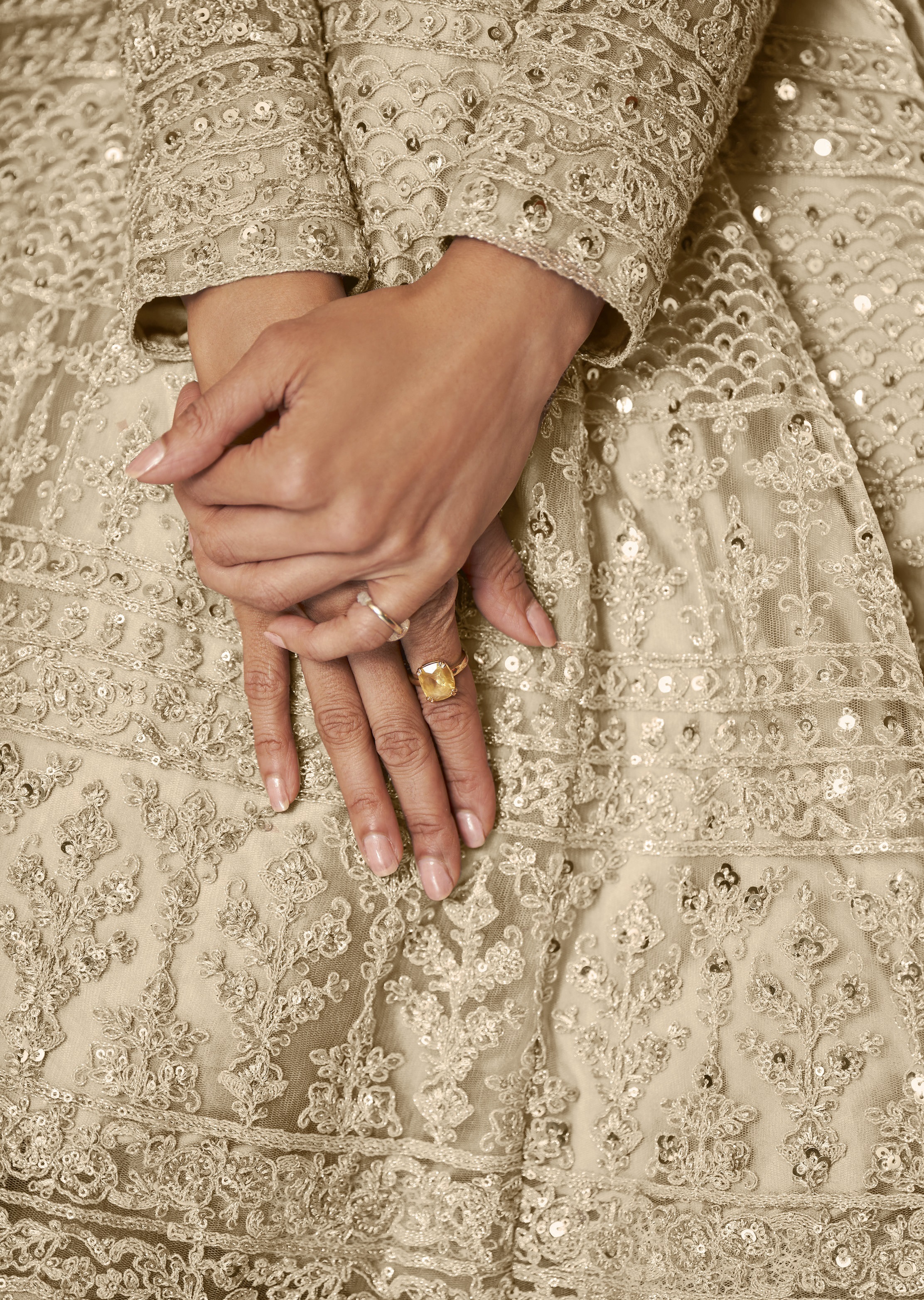 Designer Ethnic Suit Set with Dupatta Net Fabric Dori And Sequins Embroidered Wrok for Women – Cream Color