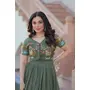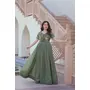 Gown :- Fabrics :- Silver Crunchy Fabric Size :- M(38), L(40), XL(42), XXL(44) Length :- 56 Inch Sleeve:- Sleeveless Flair :- 3.5 MTR Neck :- Fancy Round Neck as Shown in Image. Lining (Inner) :- Cotton Stitching Type :- Stitch With Canvas Patta Koti Fabric:- Silver Crunchy Fabric with Embroidery work Length :- 15 Sleeve:- Short sleeves Stitching Type :- Stitching With padded.