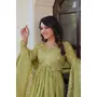 Gown :- (Full-Stitched) Fabric Work :- Gold-Crush Fabric with Sequins Multi Embroidered work Size :- M(38), L(40), XL(42), XXL(44) Length :- 56 Inner :- Cotton Flair :- 3.5 Mtr Stitching Type :- Stitched With CanvasDupatta :- Fabric Work :- Gold-Crush Fabric with Sequins Multi Embroidered work Length :- 2.3 MTR.