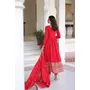 GOWN:- FABRICS WORK :- Vichitra Silk with Rich Sequins Embroidered work SIZE :- M (38), L (40), XL (42), XXL (44) LENGTH :- 56 INCH FLAIR :- 3 MTR LINING :- Cotton (Full Inner Top To Bottom) SLEEVES:- Full Sleeves NECK TYPE :- Fancy V Neck STITCHING TYPE:- Stitched with Canvas Patta DUPATTA:- FABRIC WORK:- Vichitra Silk with Sequins and Embroidered work and designer lace border. LENGTH :- 2.25 MTRBOTTOM:- FABRIC:- Vichitra Silk with Rich Sequins Embroidered work LENGTH:- 42 INCH WAIST:- Elastic waist (Customer Can Adjust Upto 32-44).