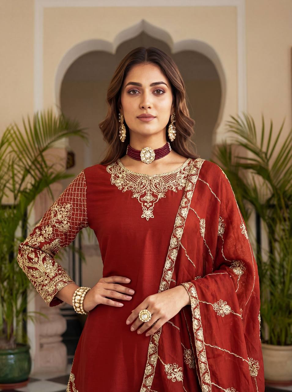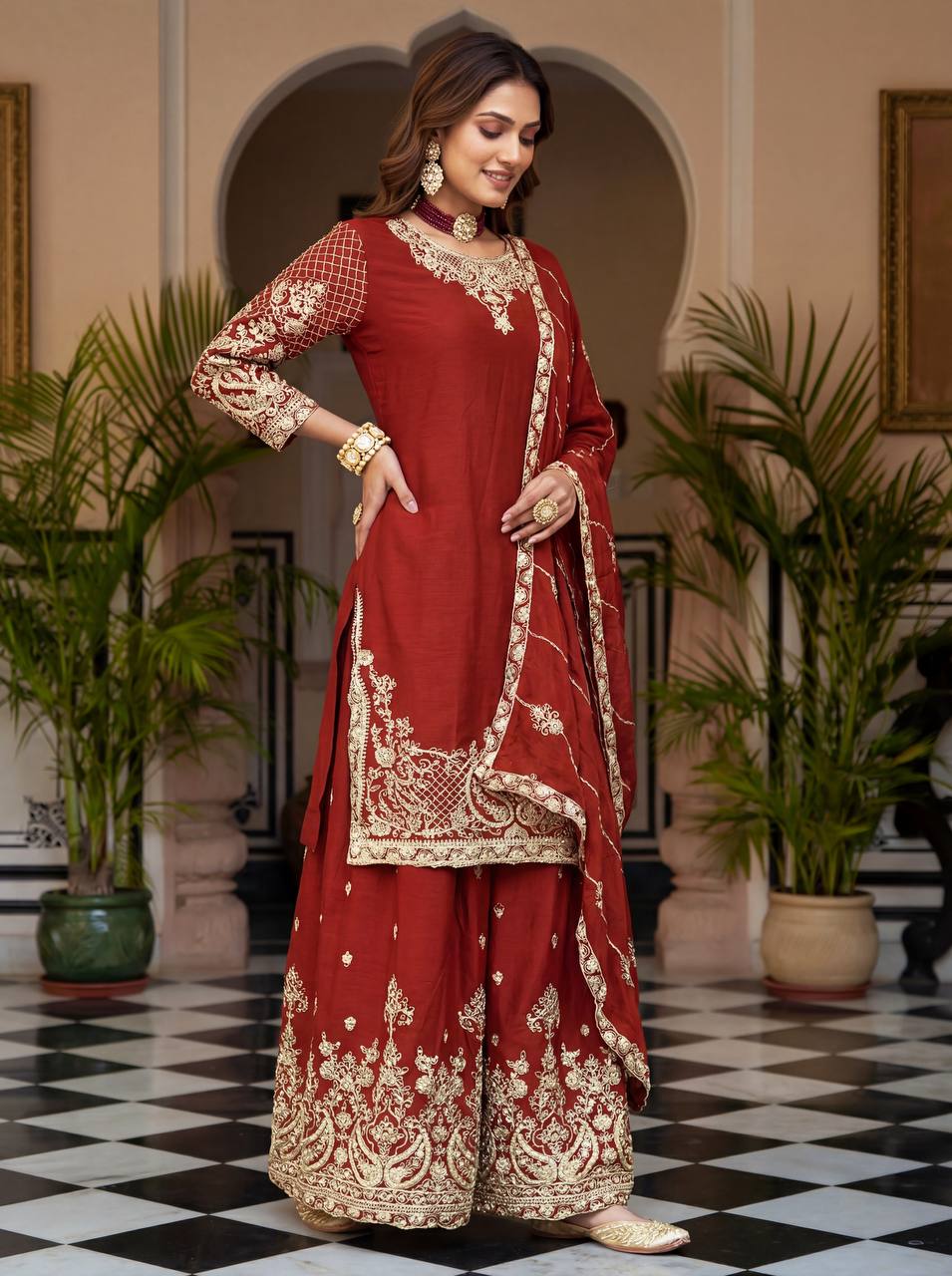 Elevate your festive style with these stunning embroidered sharara suits a perfect blend of grace, tradition, and modern charm. Whether its a wedding, festive gathering, or celebration, these rich hues of designed to make you shine.