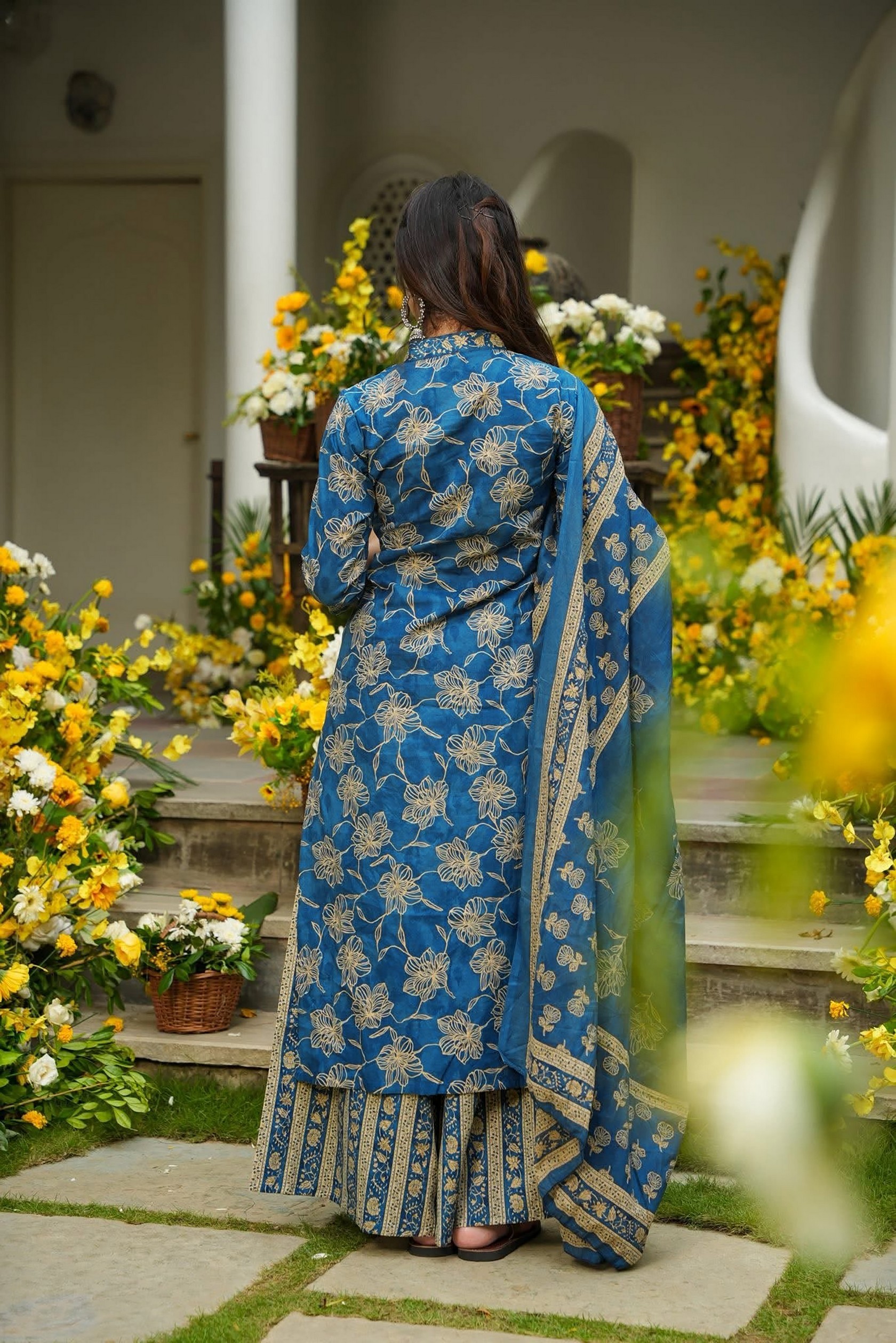 Firozi Color Beautiful Printed Muslin Fabric Readymade Palazzo Dress