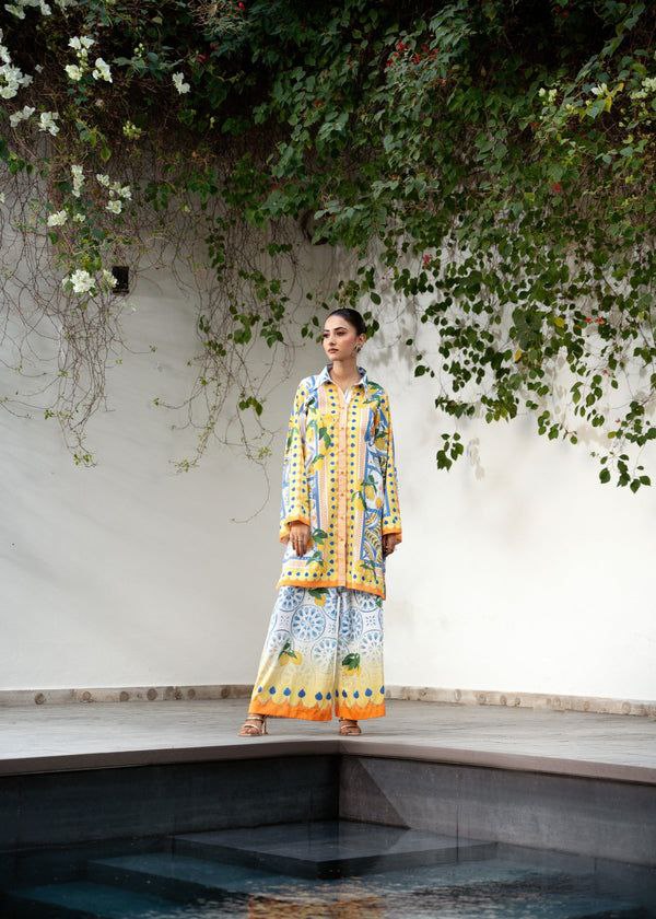 • This set includes: Kurta And Palazzo || Neck Style: Collar Neck.