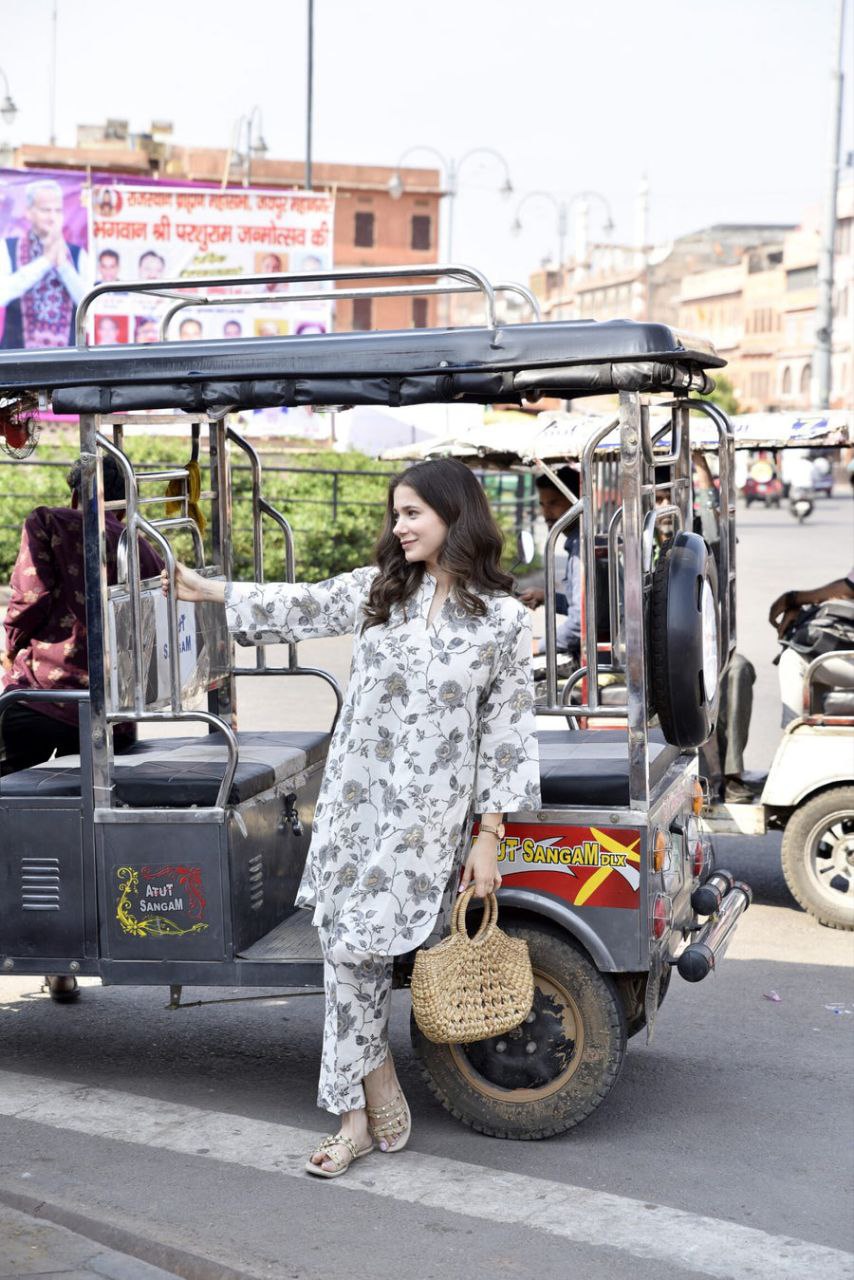 Floral Printed V Neck Kurta Set