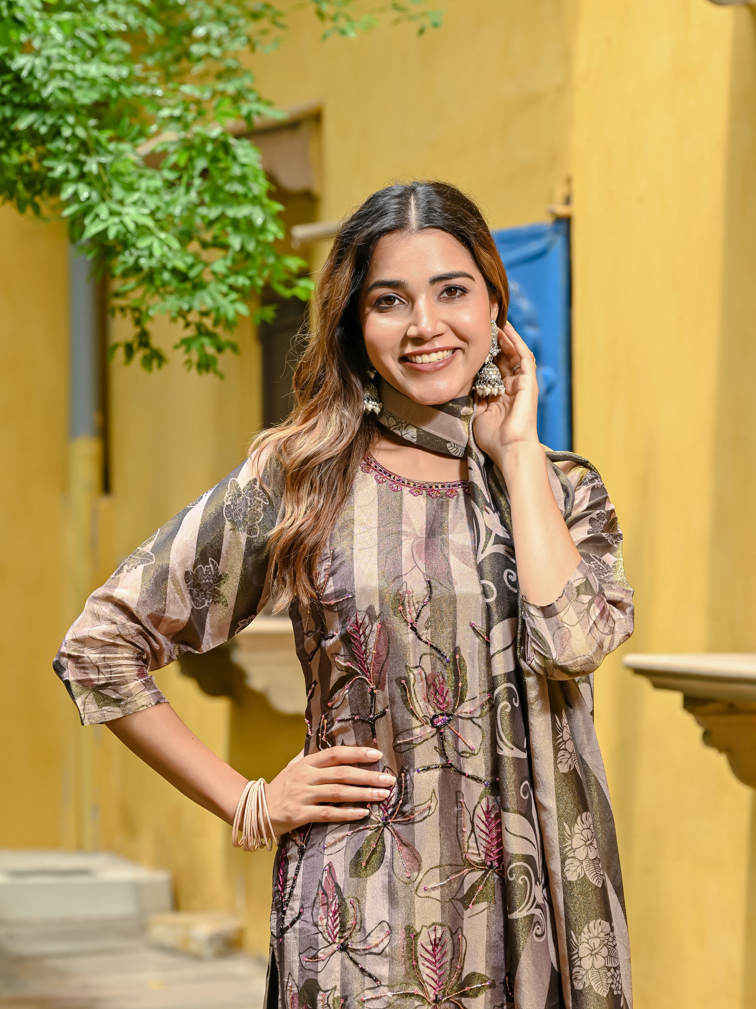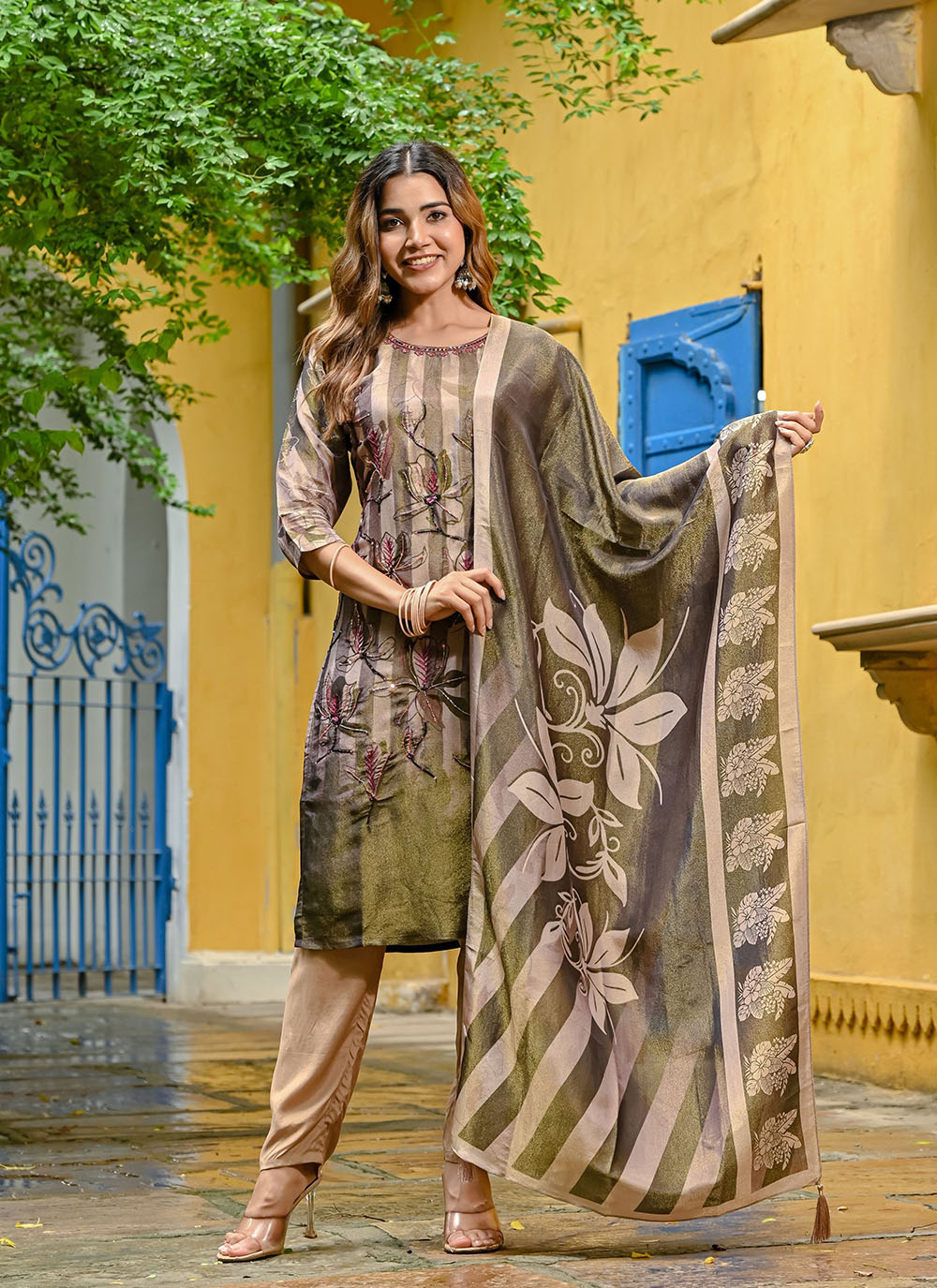 Attractive These Designer Readymade Suit in Fine Colored Pair With Bottom And Dupatta.These Top And Dupatta Are Fabricated On Jari Tissue Pair With Viscose Santoon Bottom.Its Beautified With Designer Digital Printed With Hand Work.