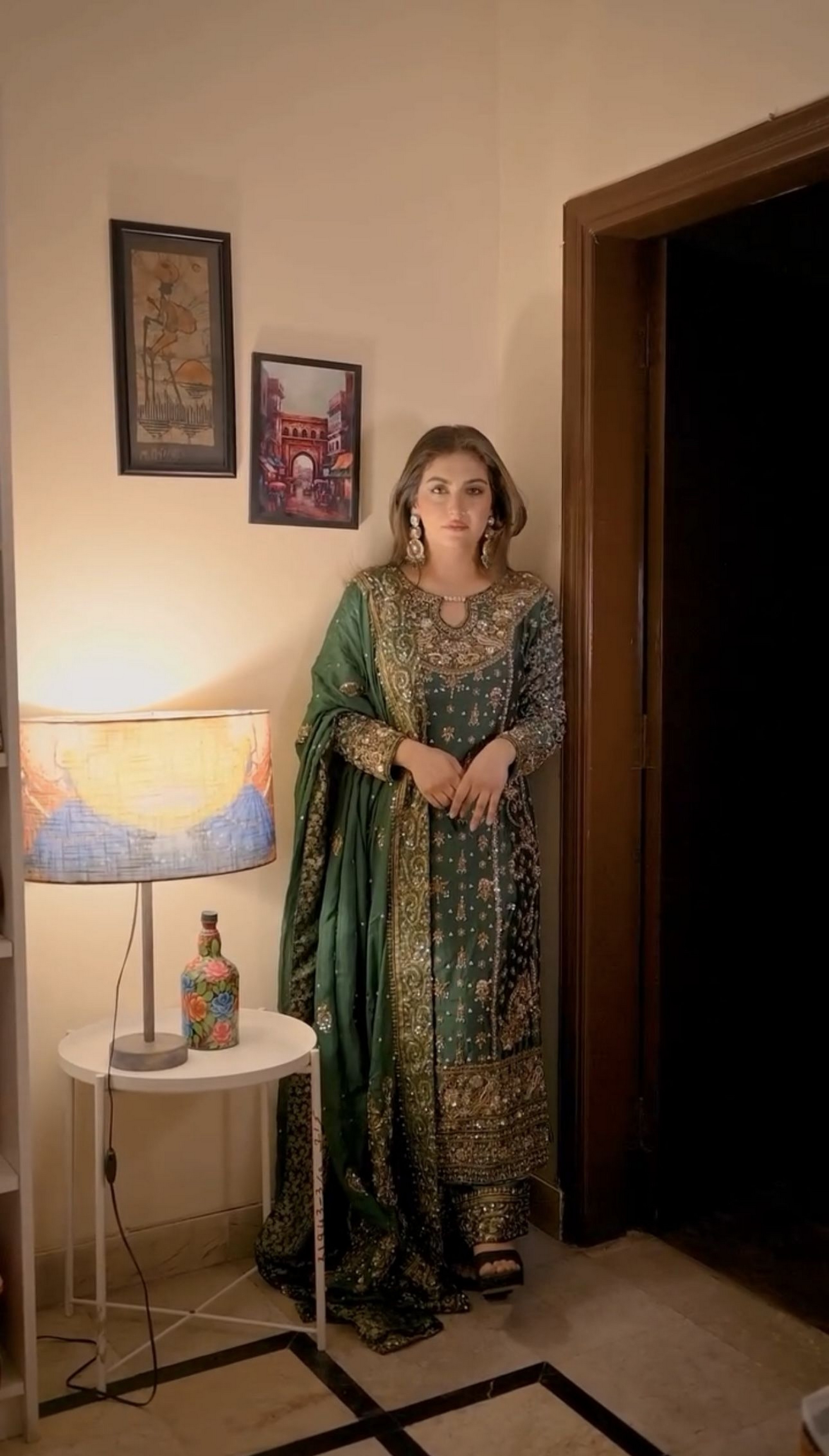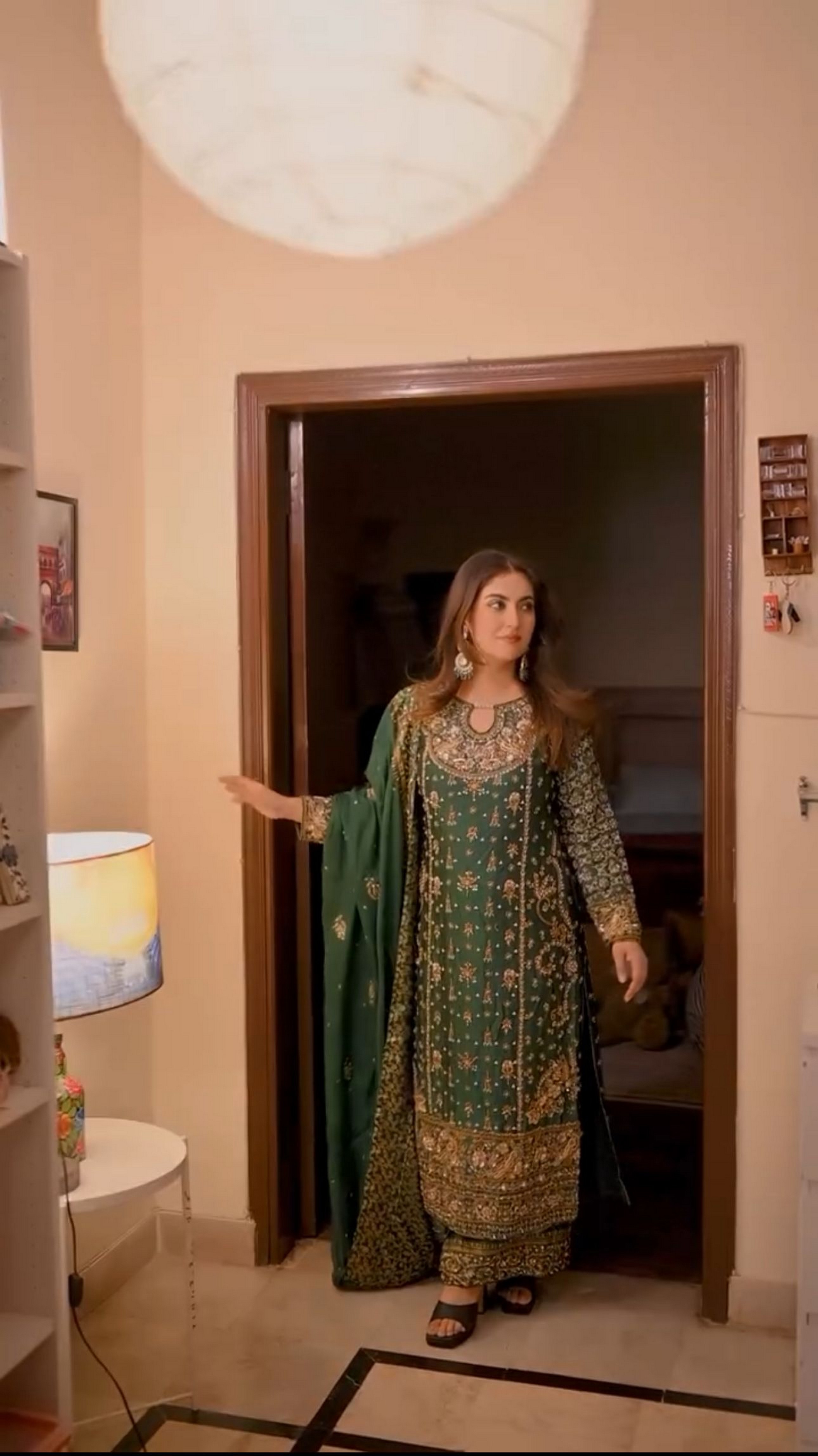 Green Color Georgette Fabric Heavy Partywear Palazzo Dress