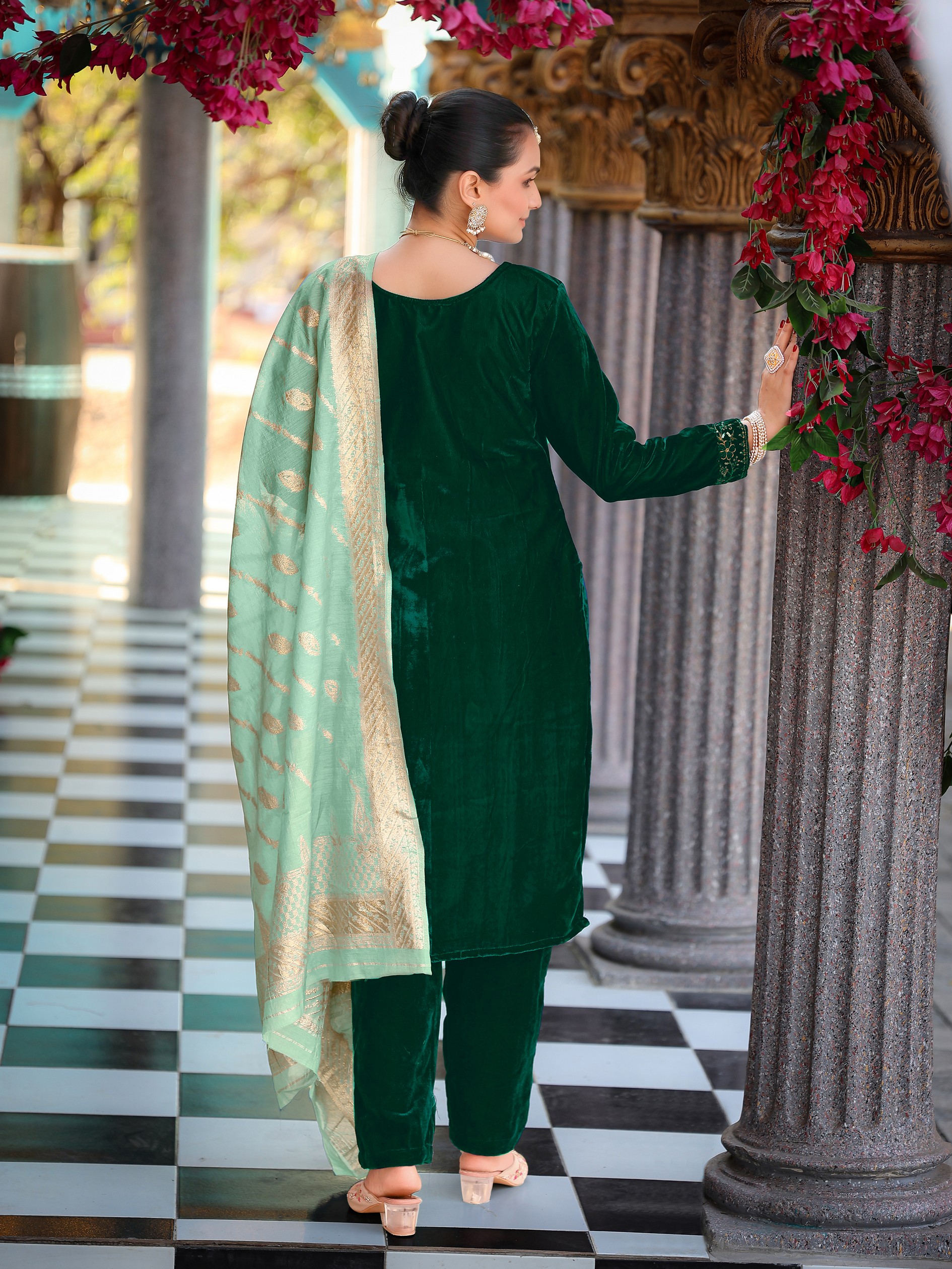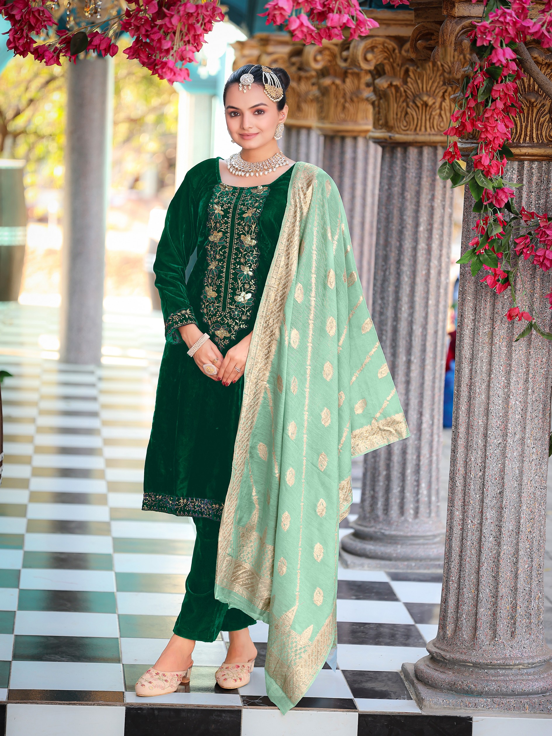 Green Color Velvet Fabric Heavy Wedding Ceremonial Salwar Kameez