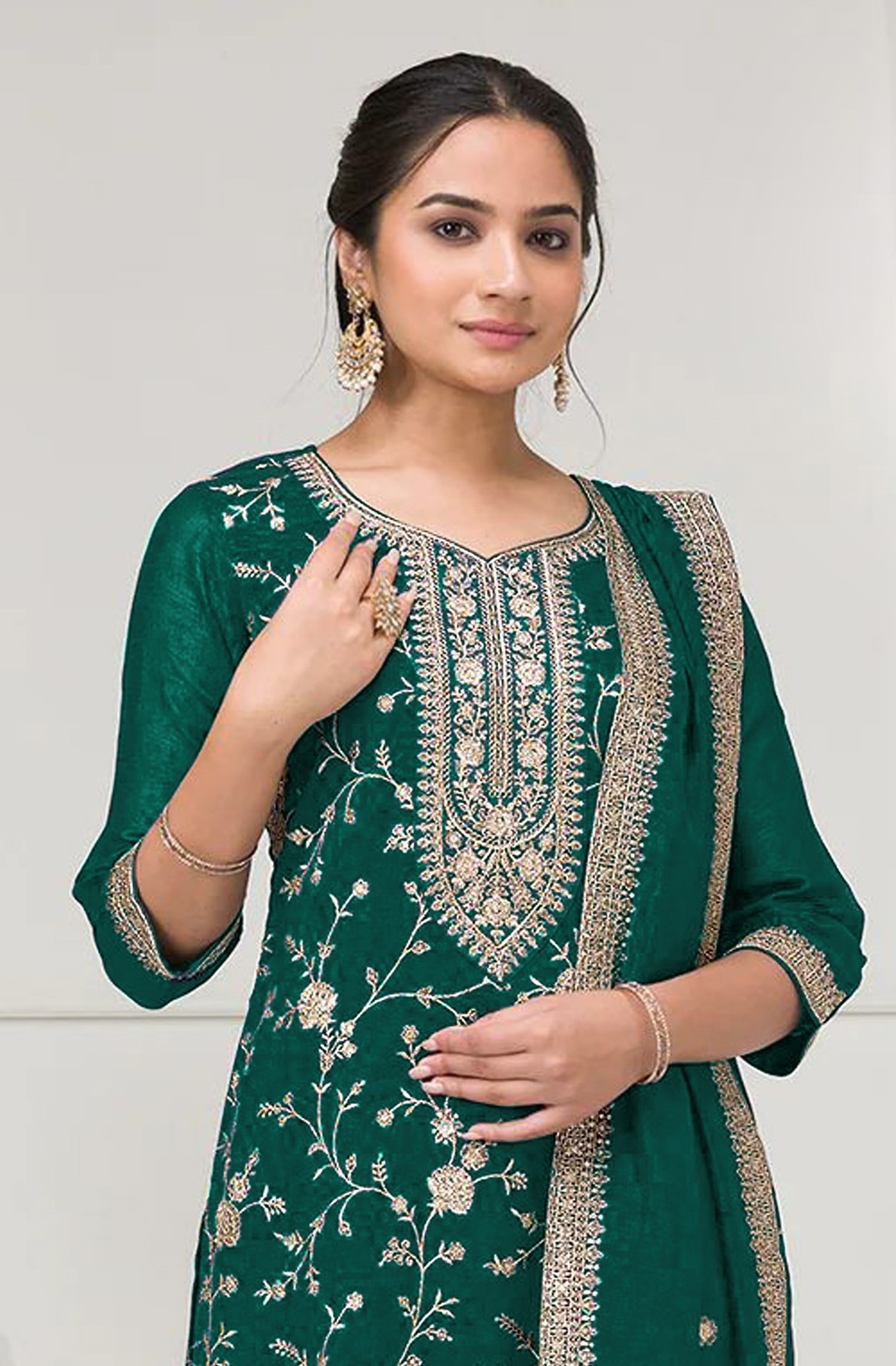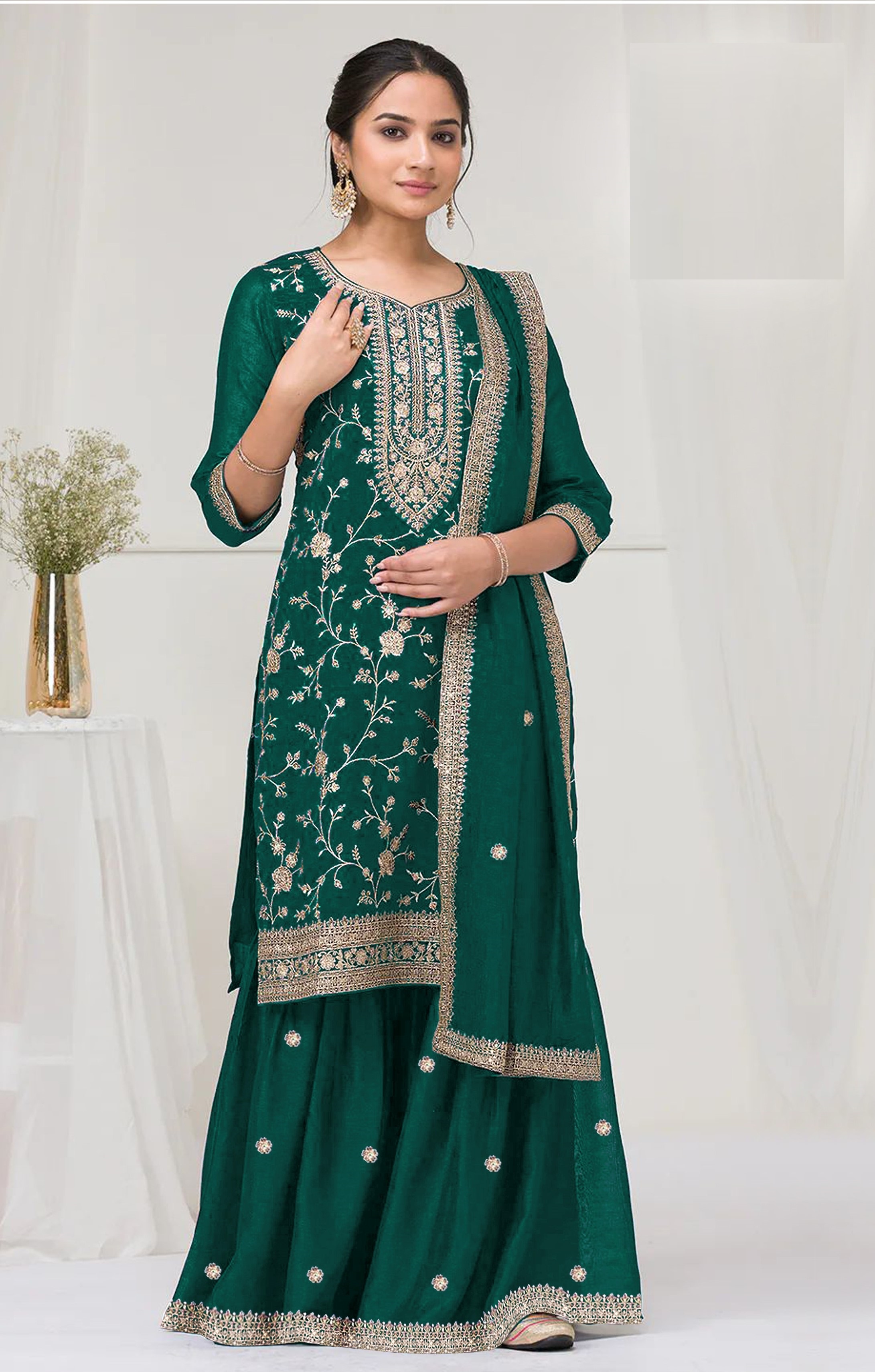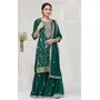 Green Color Vichitra Silk Fabric Designer Embroidery Work Palazzo Dress