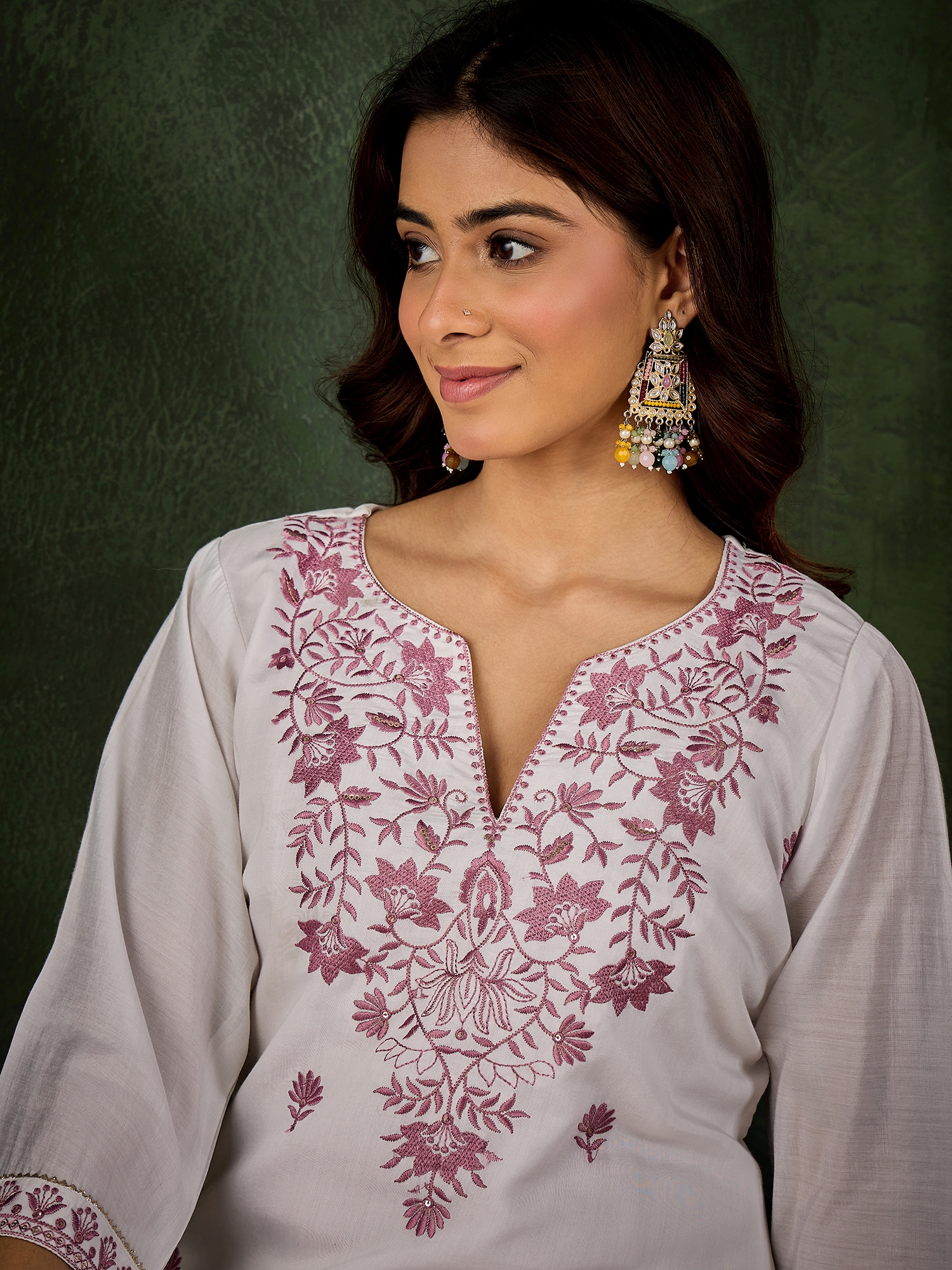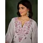 Lavender Color Roman Silk Blend Ethnic Kurta Set For Embroidered Ceremonial Looks