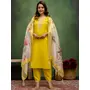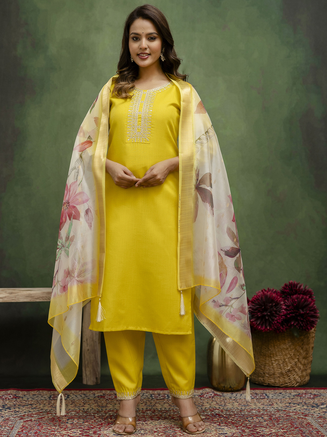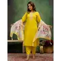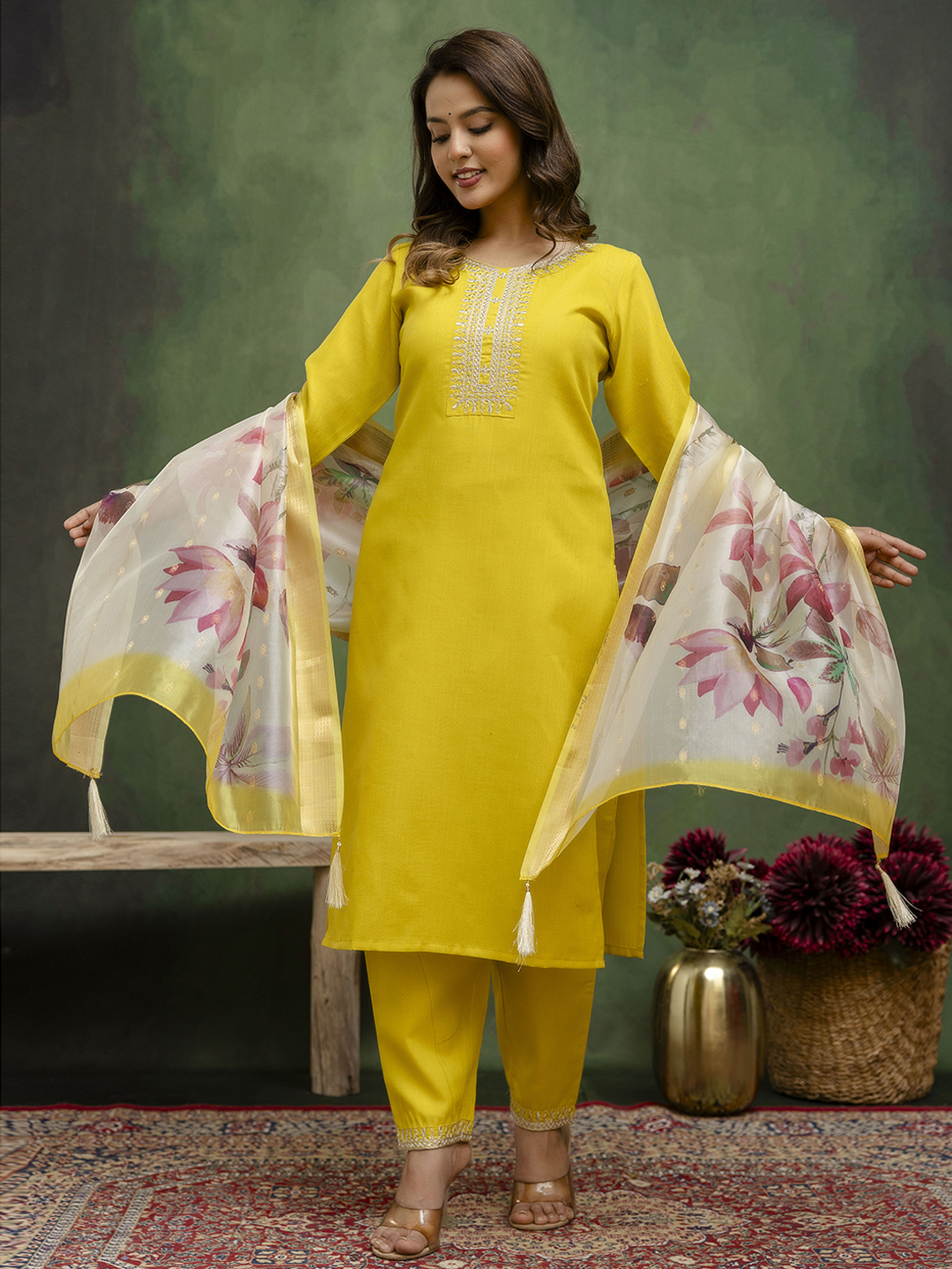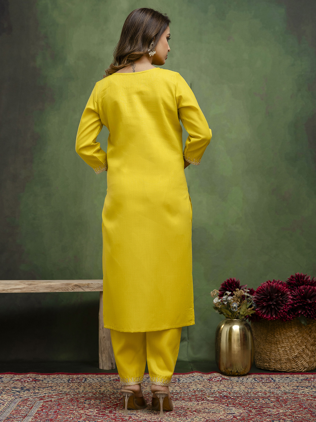 Lemon Color Beautiful Cotton Blend Readymade Kurta Set With Designer Embroidery Work