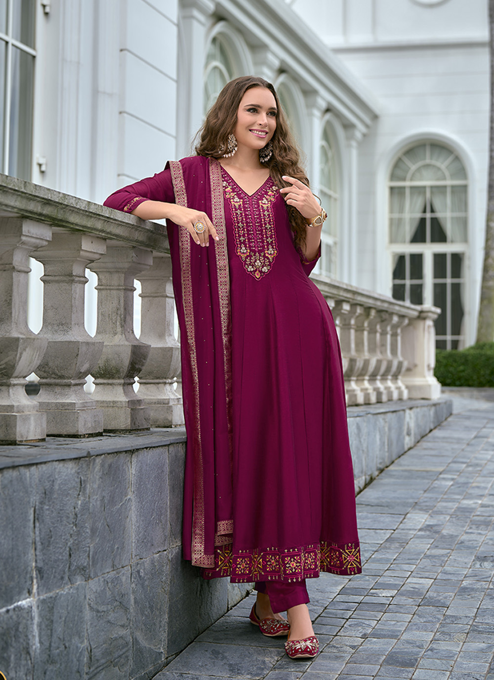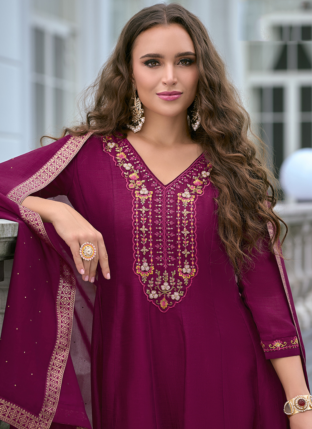 Magenta Color Vichitra Silk Fabric Stitched Salwar Kameez For Ceremonial Looks