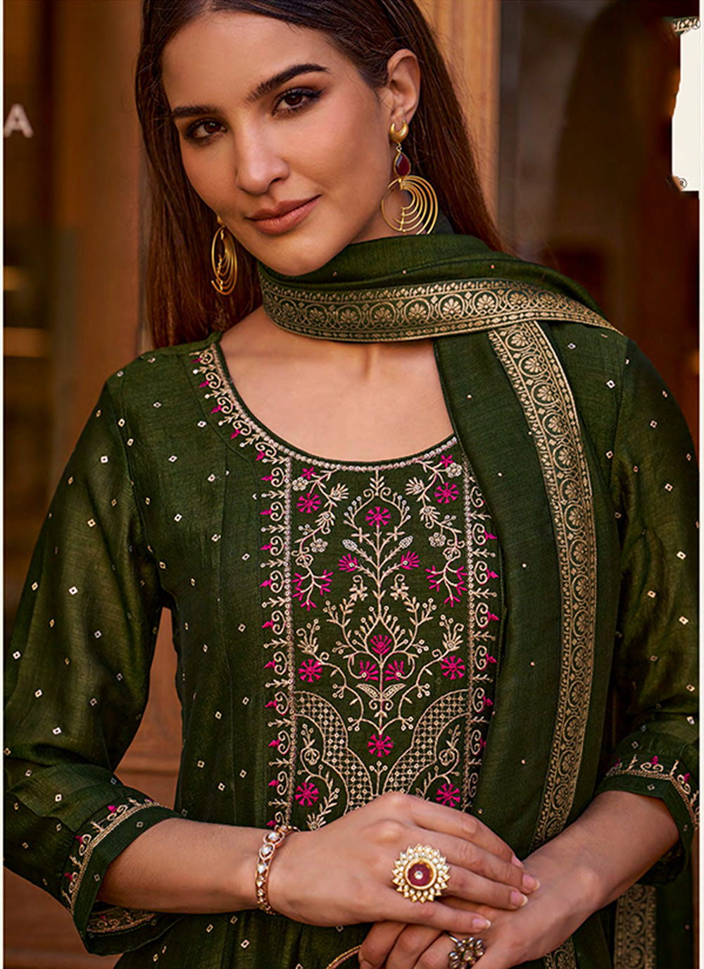 Mahendi Color Vichitra Silk Fabric Heavy Embroidered Readymade Suit