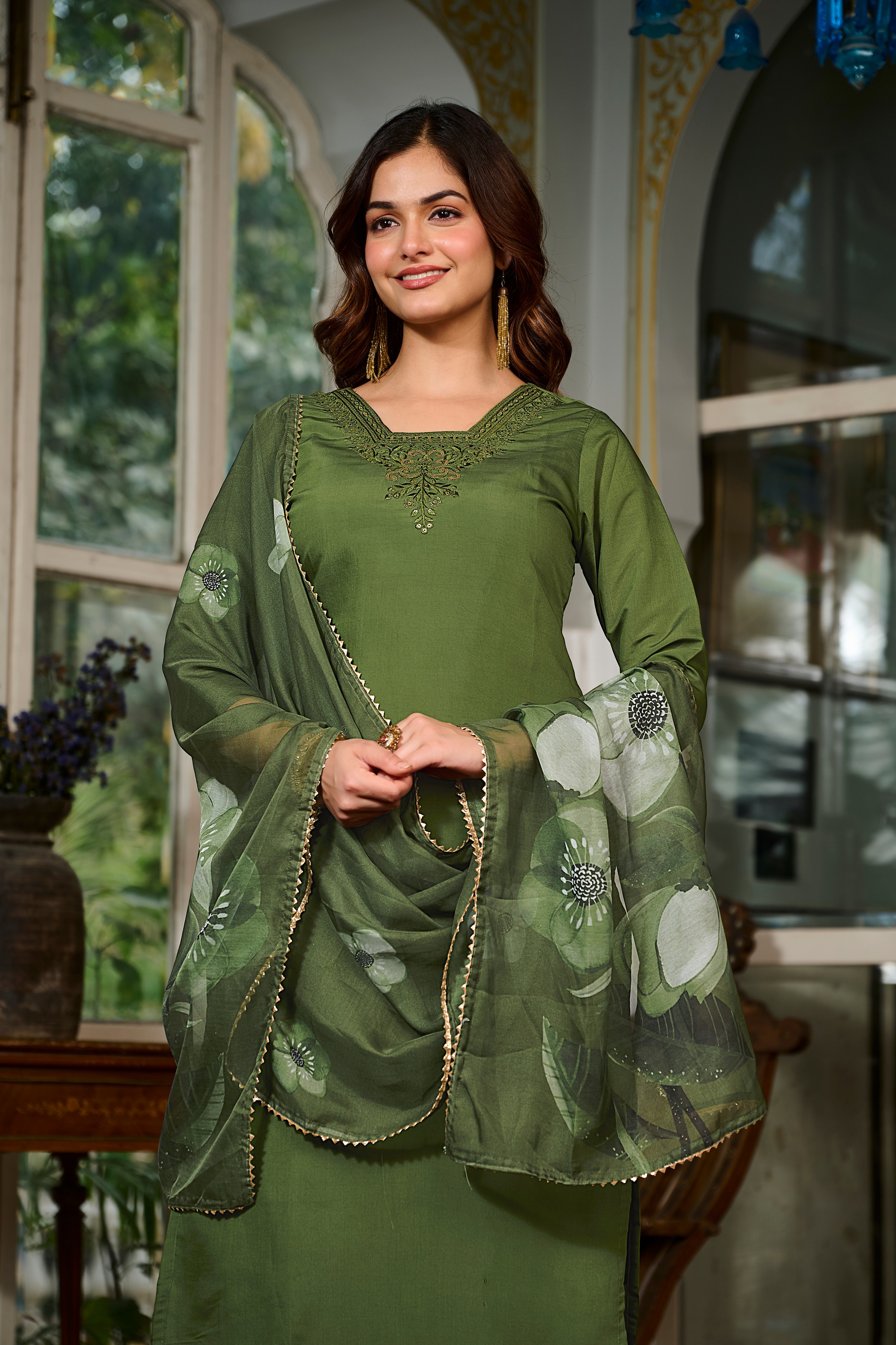 Mahendi Color Viscose Chanderi Fabric Sophisticated Partywear Suit