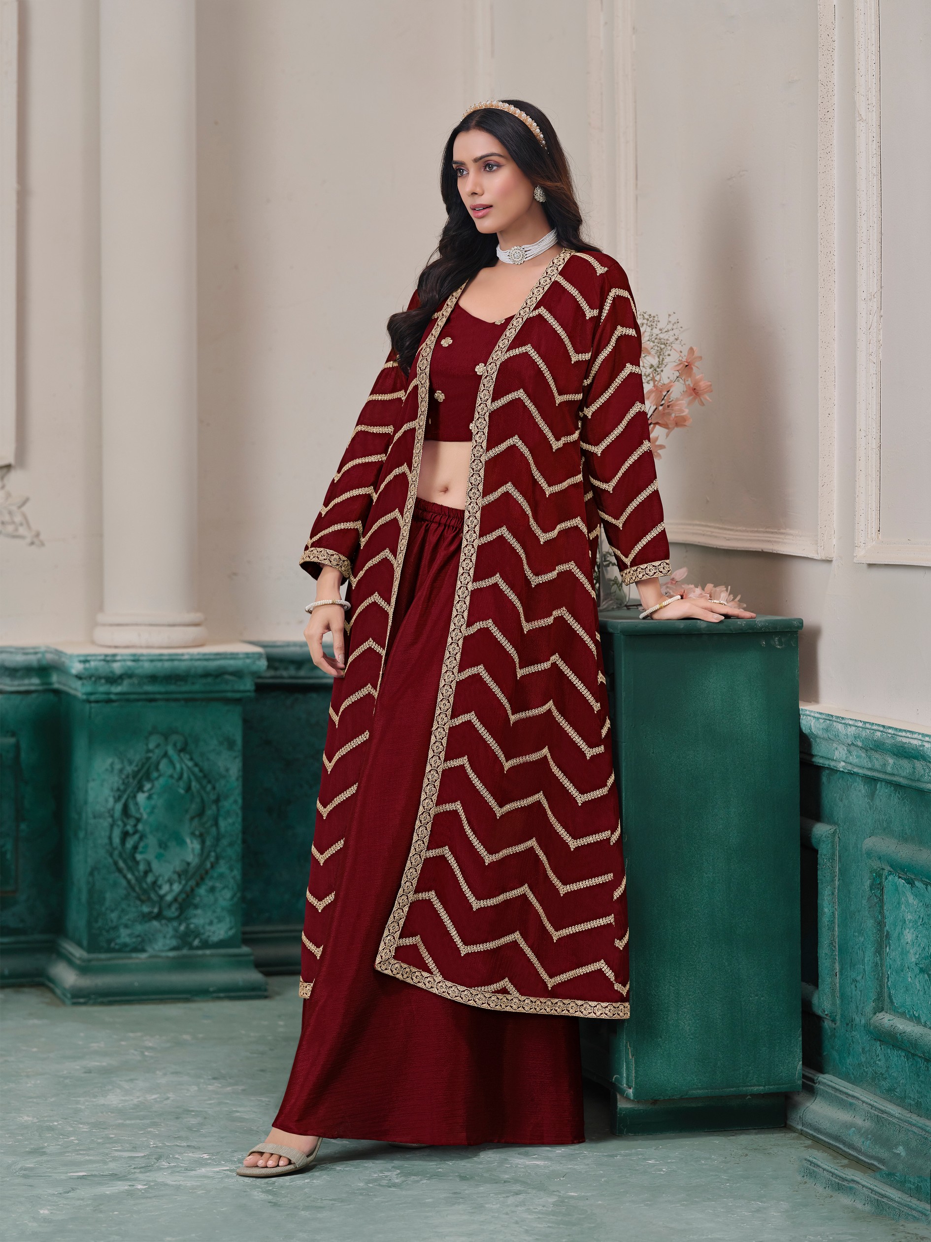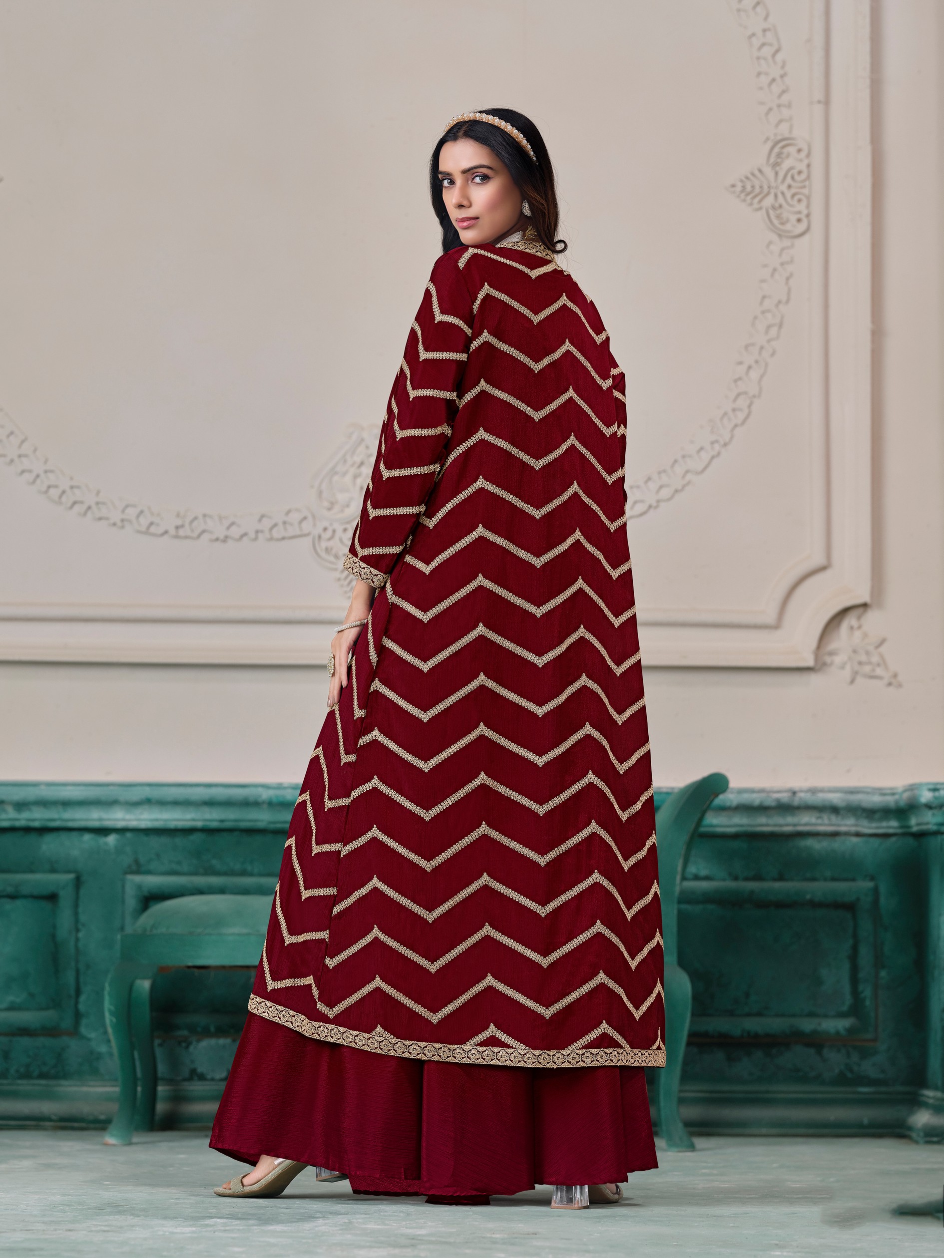 Maroon Color Designer Wedding Ceremonial Wear Designer Palazzo Dress With Shrug