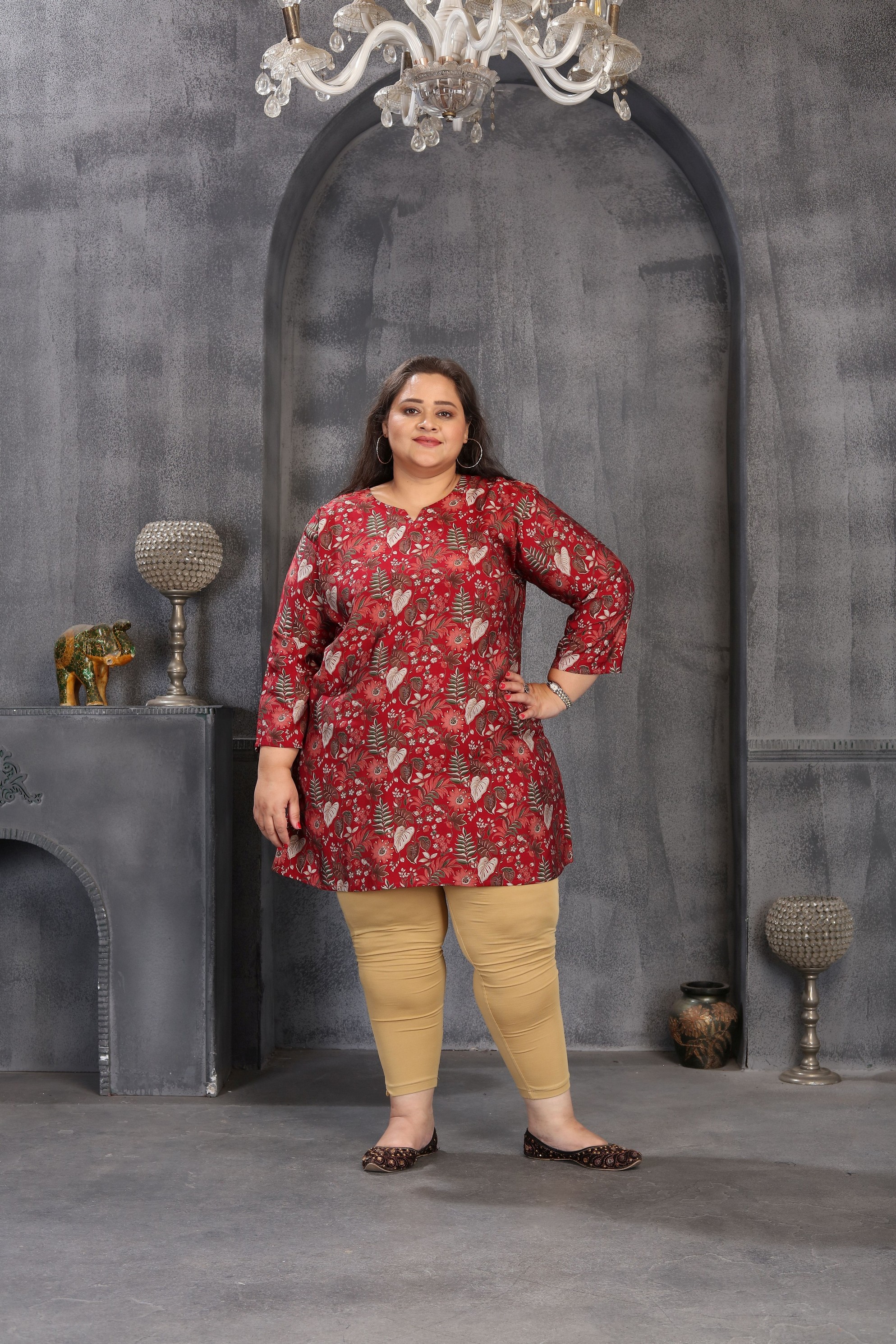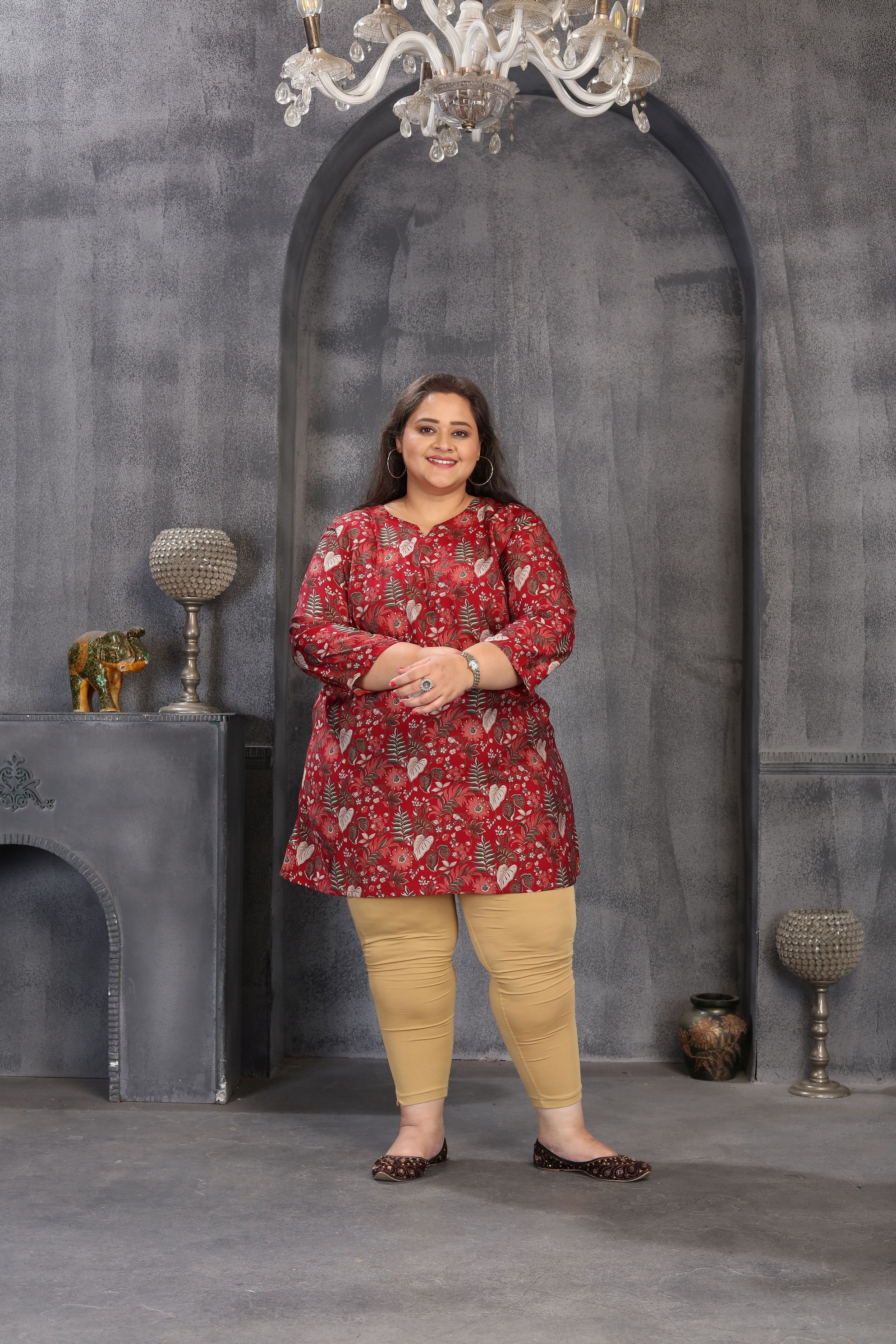 Maroon Color Plus Size Kurta For Ethnic Looks