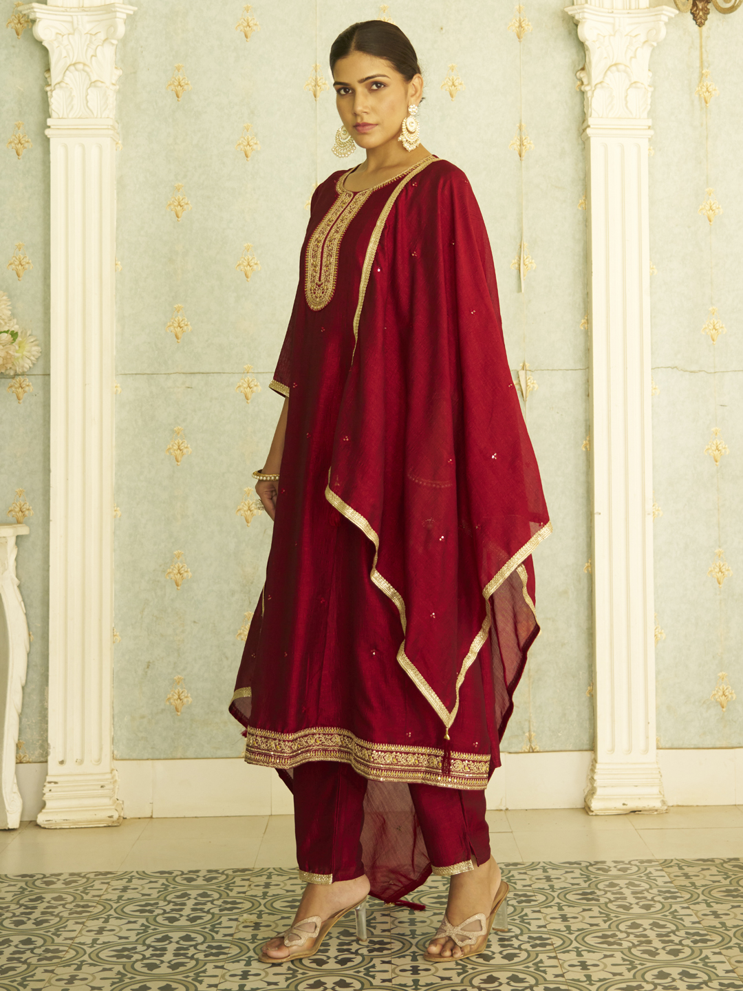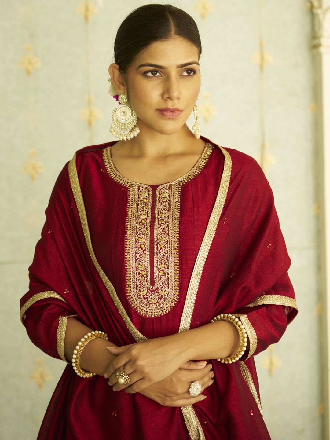 Maroon Color Silk Blend Designer Embroidery Work Heavy Looks Salwar Kameez
