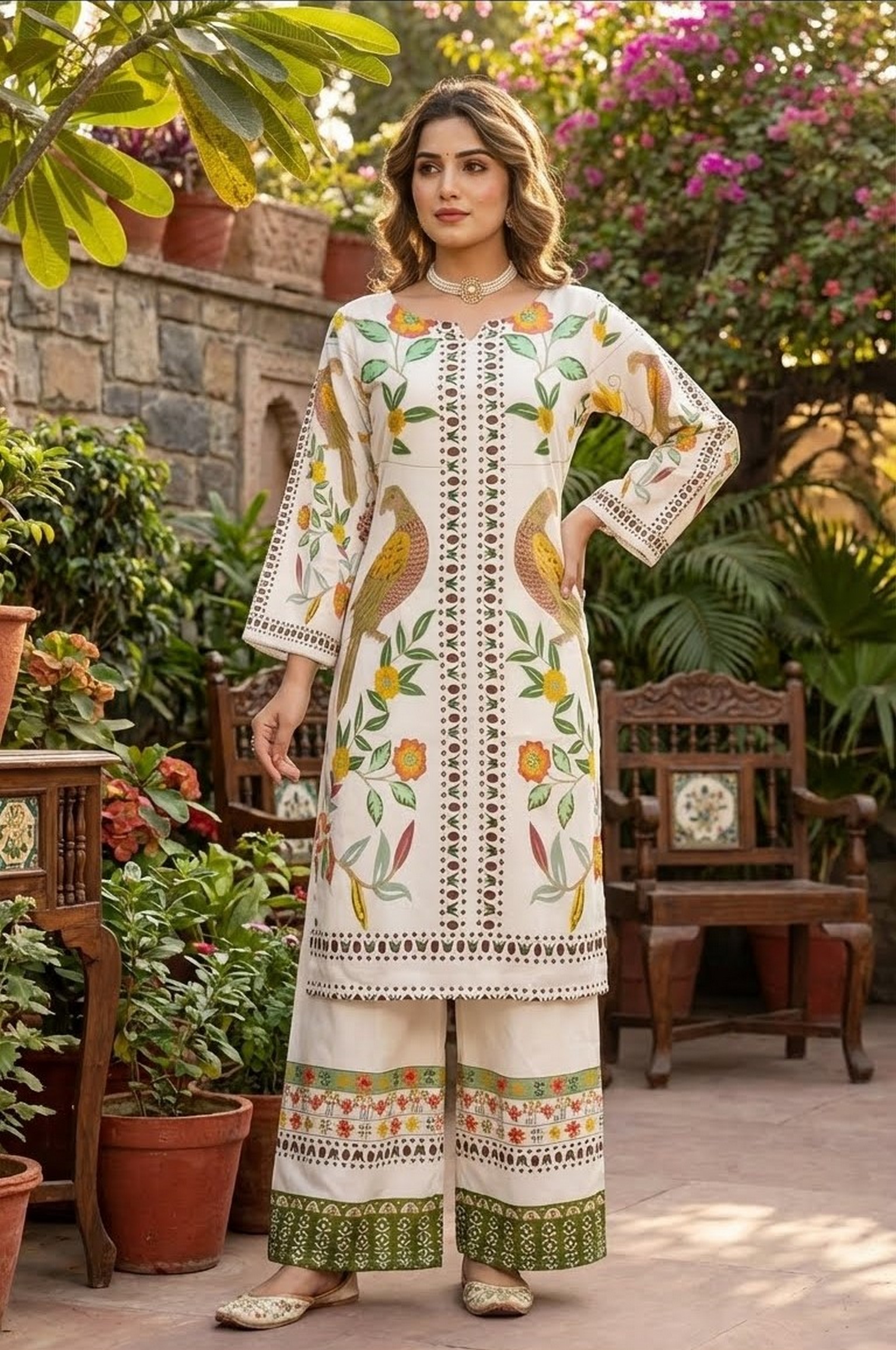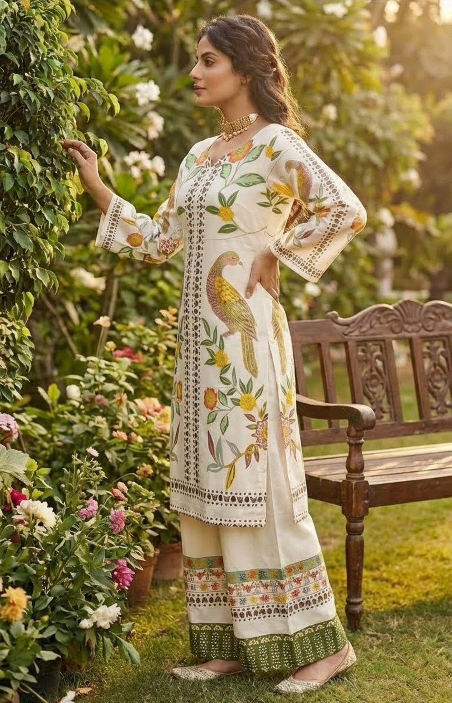 Off White Color Beautiful Bollywood Style Designer Printed Coord Set