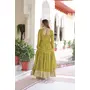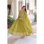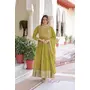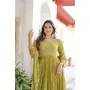 Olive Color Faux Georgette Fabric Wedding Ceremonial Gown With Dupatta For Girlie Looks