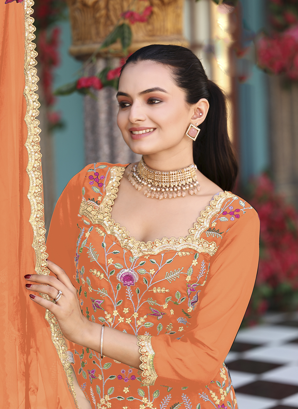 Orange Color Graceful Heavy Embroidered Palazzo Dress For Wedding Looks