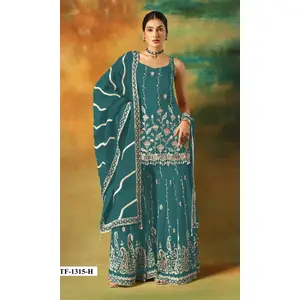 Teal Blue Heavy Fox Georgette Semi...