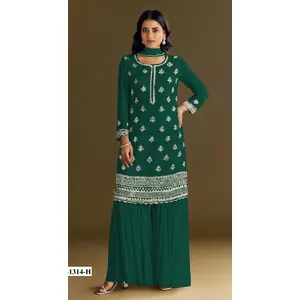 Dark Green Heavy Chinon Semi Stitched...