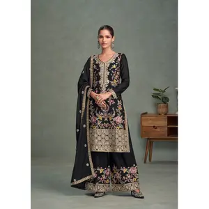 Black Chinon Embroidered With Squence...