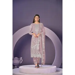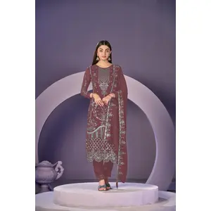 Purple faux georgette semi stitched...