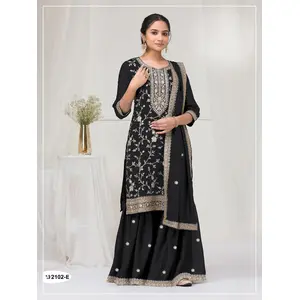 Black vichitra semi stitched suit...