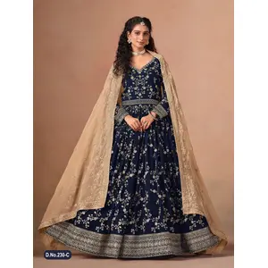 Navy vichitra semi stitched suit with...