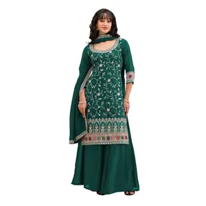 Dark Green vichitra semi stitched...