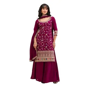 Wine vichitra semi stitched suit with...