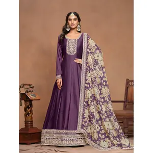 Purple Embroidered Art Silk Semi...