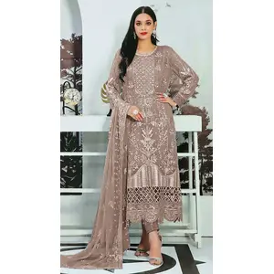 Brown Embroidered Faux Georgette Semi...