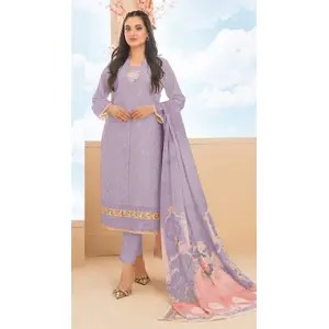Purple Cotton Semi Stitched Suit with...