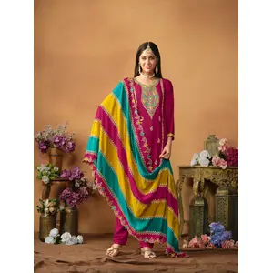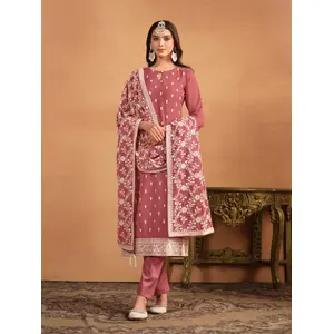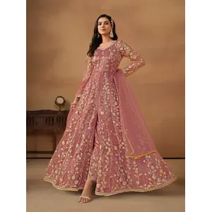Pink Embroidered Net Semi Stitched...