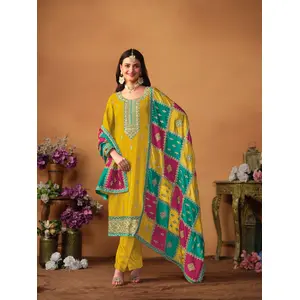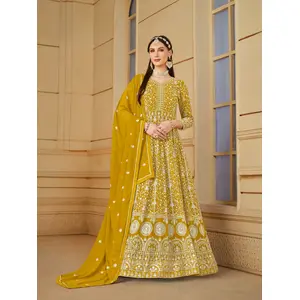 Mustard Embroidered Soft Organza Semi...