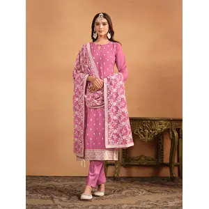 Pink Embroidered Faux Georgette Semi...