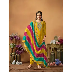 Yellow Embroidered Faux Georgette...