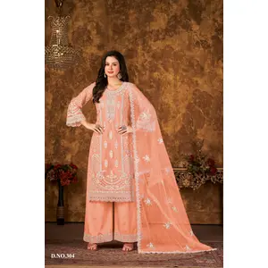 Orange Embroidered Net Semi Stitched...
