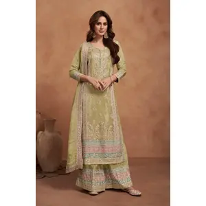 Light Green Embroidered Net Semi...