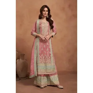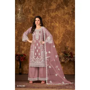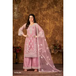 Pink Embroidered Net Semi Stitched...