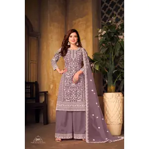 Purple Embroidered Net Semi Stitched...
