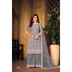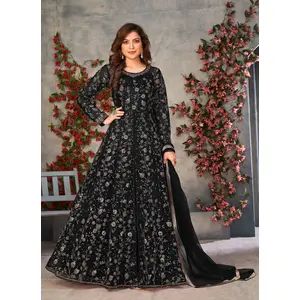 Grey Embroidered Net Semi Stitched...