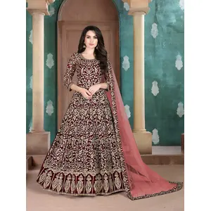 Maroon Embroidered Faux Georgette...