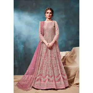 Pink Embroidered Net Semi Stitched...