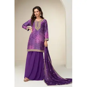 Purple Chinon Semi Stitched Suit with...