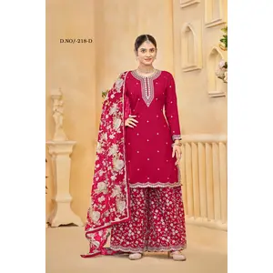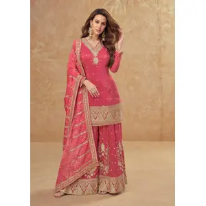 Magenta Chinon Semi Stitched Suit...