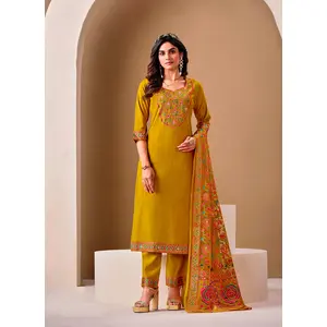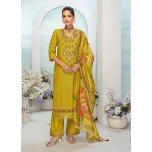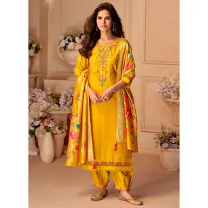 Mustard Color Roman Silk Fabric...