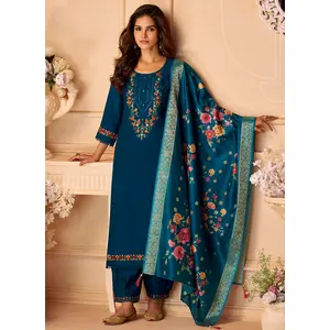 Teal Blue Color Roman Silk Fabric...